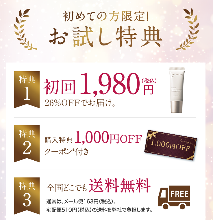 医薬部外品でスキンケアしながらメイクできるという点に惹かれ、公式サイトの初回限定価格から購入してみることにしたんです。