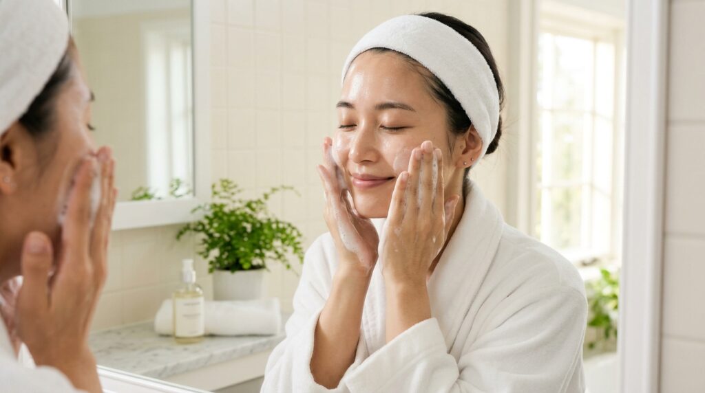 ダブル洗顔を省きたい気持ちもわかりますが、メイクをした日はクレンジング+洗顔のセットで丁寧に汚れをオフするのが理想です。